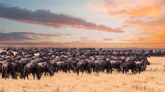 Questo tour é programmato nel periodo compreso tra Dicembre e Aprile. Il safari si concentra nella parte meridionale del parco nel periodo in cui l'enorme marea di milioni di erbivori (principalmente gnu, zebre e bisonti) proprio qui a sud trova una terra rigogliosa e abbondante di pascoli, elementi che costituiscono per gli ungulati una ghiotta fonte di cibo. In questo lasso di tempo, le madri incinte aspettano di partorire i loro piccoli e poi, da lì a poco, riprendere il loro cammino che si ripete, ciclicamente, sin dalla notte dei tempi.